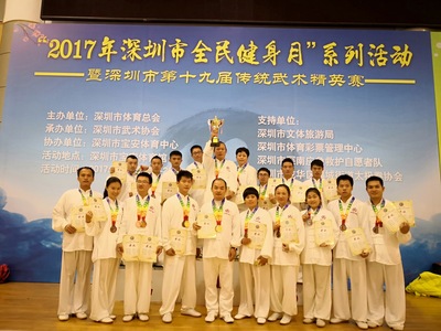 為彰顯武道推拿的武醫文化及實力,因此一直以來也積極參加各種社會團體活動,自2017年9月連續兩年參加世界太極拳交流賽去多1金4銀佳績以來,又再次于2017.11.25參加深圳市第19節傳統武術精英賽取得兩項第一名、兩項第二名、兩項第三名、第4-第七各一名的佳績!